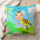 kussen met kindertekening, cartoon tussen de bloemen met de zon