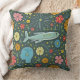 Dit is een designkussen met vis, intelligentie en bloemen op een groene achtergrond.