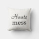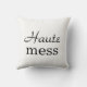 Dit zwart-wit kussen is versierd met de schattige uitdrukking Haute Mess op de voor- en achterkant, waardoor het perfect is voor een slaapkamer, zitkamer of woonkamer.