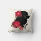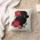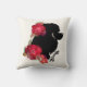 Piloot met poodle silhoutte-kunstontwerp en rode bloemen. Afgedrukt op achterzijde en voorzijde. Beschikbaar als binnen- en buitenkussen. Geweldig geschenk voor pooienbezitters! Zwart, rood en crèmewit.