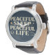 Een rustgevend typografisch ontwerp met de uitdrukking "Vreedzame slaap, vredig leven" in elegante crème-kleurige serif letters op een diepe marine achtergrond. Decoratieve maan, sterren en zachte bloemen versterken het rustige, nachtelijke thema - ideaal voor muurkunst, posters of digitale wellnessinrichting.