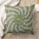 Spiraalvormig afbeelding in haak. Een kant met gevarieerde greens als achtergrond en wit als de spiraalarmen die uit het midden uitstralen. Tweede zijde heeft een witte achtergrond met de groene spiraal.
