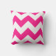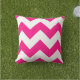 Hot Pink zigzag chevron kussen buitenshuis (groot patroon). Gemaakt in de VS. UV- en mildew-resistente tuin- of patio-kussens met moderne design in heldere zomerkleuren. Verkrijgbaar in een vierkant van 16 of 20 inch en 13 bij 21 rechthoekige formaten. Invoegen inbegrepen. (Ook beschikbaar als binnenbank of sofa werpen kussen, enkel uitgezochte katoen of polyester van de Stof tabel).