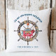 Kustkerst, zeescheepsvakantie gooit kussens met originele kunstwerken van een met weven aangeweven kapitein-wiel uit in snaarlicht, zee glazen bal en zeestervis ornamenten, met een schattige krab met een driftwood-teken dat "Vrolijk Kerstfeest" zegt. De groet zegt "Yo Ho Ho Prettige feestdagen", en de achterkant is klassiek marinesblauw. Pas aan met uw favoriete groet, familienaam en jaar.