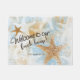 Deze Welcome Doormat heeft een prachtige kustzeester met een grote en kleine realistische zeester en een aantal andere in wit op lichtblauwe achtergrond en Welkom in een scriptlettertype. Zoek andere producten in dit Collectie van de Kuststaartvis. De tekst luidt als volgt: Welkom in ons winkelcentrum. Het aanpassen van uw familienaam is gemakkelijk te doen. Ontwerp door Jenn's emporium.