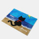 Een leuke kat houdt van deurmat met een schattige zwarte kat op een zandige strand en golven van de oceaan die van de zon genieten met de woorden "Veeg je poten af!" Pas dit leuke kattendoormat aan voor je favoriete kattenliefhebber!
