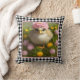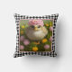 Kute goot kussen voor Spring en Pasen is voorzien van een digitaal kunstschilderij van chick onder roze en gele bloemen met zwarte en witte gingham tegen de achtergrond van de grens.