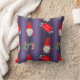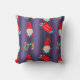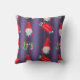 Een schattig kerstkussen om je thuis te versieren tijdens het komende vakantieseizoen. Dit schattige patroon van kerstgnomen en elven heeft kerstkousen en de groet, "Merry Kerstmis" op rode borden met snoepsnoeren, allemaal op een paarse achtergrond.