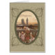 illustratie van vier kinderen en een hond die Big Ben van de brug in Londen over het hoofd ziet, is Afbeelding ingesloten in een lijst met een kalligrafierolpatroon ontworpen door wereldcadeaus. Bord afbeelding werd voor het eerst ongeveer 1889 gepubliceerd