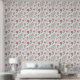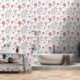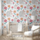 Schattigee konijnenmoeder en konijntje en bloemenpatroon kwekerij wallpapers. Een mooi patroon van een schattige grijze konijnenmoeder met haar baby en koraalbloemen sieren dit ontwerp.