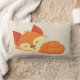 Een lumbale kussen met een roomkleurige achtergrond met trendy zwakke geometrische vormen. Lagen boven is een cartoon tekening van een schattige oranje vos die rustig slaapt.