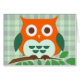 De Oranje Owl van de terugkeer op een tak grafisch. Groene vlakke achtergrond die kan worden verwijderd. Trendy lieve moderne uil.