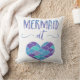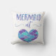 Kute Mermaid op Heart goot kussen. Deze kussen hebben het gezegde "Zeemeermin bij hart" geschreven in een mooi lettertype dat gekleurd is met blauwe, paarse en groene waterverven. Compleet met blauw, paars en groen hart met zeemeerminnen.