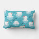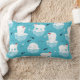 Een lumbale kussen met een schattig kerstpatroon met polaire beren die op drijvend ijs staan met rode kerstmantels. Kleine stijfjes, sneeuwvlokken en vissen rondom deze schattige polaire beren die op het water koelen. Lichtblauwe achtergrond. Kute en griezelige vakantiemodel.