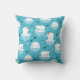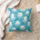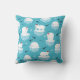 Een kussen met een schattig kerstpatroon met polaire beren die op drijvend ijs staan met rode kerstmantels. Kleine stijfjes, sneeuwvlokken en vissen rondom deze schattige polaire beren die op het water koelen. Lichtblauwe achtergrond. Kute en griezelige vakantiemodel.