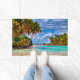 Een prachtig hedendaags schilderij van heldere blauwe zomerhemel boven aqua turquoise blauwe oceaan en groene palmbomen en bladeren op een strand in Hawaï. Dit , elegante en funky hipster-ontwerp voor de liefhebber van flora en fauna, Hawaii, stranden en zand, vakantie en reizen naar exotische plaatsen en wereldlanden. Accessoires voor de decoratie van de meester of de kinderslaapkamer, keuken, kinderdagverblijven, woon- of gezinsruimten, man- of vrouwengrot, dorm, condo, studio of appartement, vakantiewoning, strandhuis, landhuisje, RV of kampeerboot of jacht.