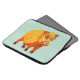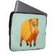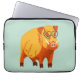 Een grappige hoes van een varkenslaptop met een afbeelding van een digitaal geschilderde beer met grote slagtanden en hartvormige ooglassen in felgele, oranje en blauwe kleuren.