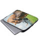Ik ben erg blij met het product. Het beschermt mijn laptop goed, door de zachte binnenkant. De rits gaat soepel open en dicht. Met de afdruk ben ik super blij. Mooie kleuren en heldere scherpe zwarte lijnen. Het manga meisje is echt heel mooi geworden.
