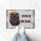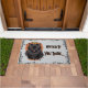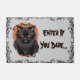 Kwaadaardige zwarte kat komt binnen als je de welk deurmat