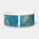 schilderij van een witte en gele kwal in blauw water met enkele belletjes die in blauw water zwemmen