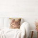 Kussen met een herdruk van de originele Ives-lithografie genaamd "The Cares of a Family", met een familie van kwartels in een weide met zacht zomerlicht.