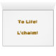 De gefeliciteerde Hebreeuwse uitdrukking "L" chaim staat zowel in het Hebreeuws als in de transliteratie tussen twee symbolische jonge bomen.