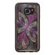 Copyright © 2014, Susan Wallace. Abstract faux-gekleurd glasontwerp van bladeren in schoppen van helder paars, zilver, periwinkle en violet die een centrale bloem van levendige paars vormen.