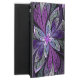 Copyright © 2014, Susan Wallace. Faux-gekleurde glazen bladeren in tinten van helder paars, zilver, periwinkle en violet lijst een centrale bloem van levendige paars in dit ingewikkelde abstracte stuk.