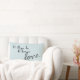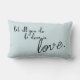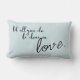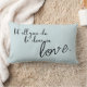 Eenvoudige lichte blauwe kussen met handgeschreven lettertypecijfers op zowel voor- als achterzijde. Het citaat luidt: "Laat alles u in liefde gedaan worden". Letteren is zwart. Zoek dit ontwerp op andere producten van Farmhouse Living.