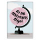 "Laat de avonturen beginnen" - Een originele digitale illustratie van een roze wereld wereldbol is de achtergrond voor een hippe hand-briefed blik ontwerp, geplaatst tegen een blauwe hemel en wolkenachtergrond. Dit ontwerp is ideaal voor elke reisliefhebber, afstuderen of eenieder die een eigen nieuw avontuur aangaat - of het nu gaat om pensionering, scheiding of loopbaanverandering. Blank binnenin voor je persoonlijke bericht.