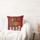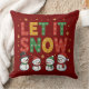 Vier kleine sneeuwpoppen met typografie van Let It Snow en sneeuwvlokken.