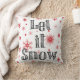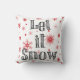 Witte kussens met rode sneeuwvlokken en stippen met de leuke "Laat het sneeuwen" formulering om je huis te versieren voor de winter.