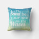 Dit hoofdkussen zegt de zomer! Van de ombreachtergrond in mooie schaduwen van blauw, blauwgroen en groen. Aan de tekst die zegt laat het zand uw zetel zijn als geraakte golven uw voeten. Een overzichtsschets van zeestergrens het hoofdkussen en voegt interessante textuur toe. Dit hoofdkussen is groot voor strandhuizen of huisdecor met een oceaan kustthema.