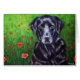Reproductie van een origineel acryl schilderij van Michelle Wrighton van Poppy, een prachtige zwarte Labrador Retriever hond, zittend in een veld van rode klaprozen