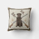 chocolade Labrador Retriever staat met geweren op de achtergrond en aantrekkelijk voor Friskybizpet Design voor jagers die met hun lab jagen.