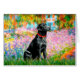 Een tuin in Giverney door Claude Monet, aangepast om een zwarte Labrador Retriever op te nemen, was echt Monet's tuin, vol heldere bloemen.