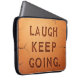 Een visueel opvallend ontwerp met de uitdrukking "Laugh Keep Going" in een gedurfd, oud geïnspireerd lettertype. De tekst is weergegeven in een levendig, aards kleurenpalet dat doet denken aan oude manuscripten, waardoor een gevoel van geschiedenis en wijsheid wordt gecreëerd. De algehele compositie is dynamisch en in het oog springend en inspireert kijkers om positiviteit en doorzettingsvermogen te omarmen.