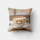 Lachende latte door zonnig raam kussen