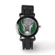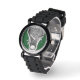 Lacrosse thema horloge met laxstick op groene achtergrond. Voeg naam of initialen toe om te personaliseren.