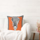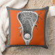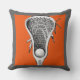 Lacrosse speler of coach kussen met lax stok-en-bal ontwerp op oranje achtergrond.