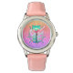 Cute ladybug in munt green, bedekt in harten in roze, paarse en groene kleuren. Ze heeft een chiffonboog om haar nek, en is geplaatst op een ombre glitter achtergrond van paars, roze en perziken.