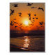 De silhouetten van een kudde vogels die over de zon vliegen aan de oevers van het meer van Erie. Een funky afbeelding met dank aan National Schilderachtig Byways Online.