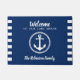 "Welkom bij onze Lake House" deurmat, met uw gepersonaliseerde familienaam. Met een chique moderne nautische boot anker op mooi marineblauw.