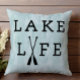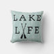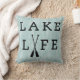 Onze aangepaste kussens bewogen met de woorden "Lake Life" in zwart op een zachte blauwe/groene achtergrond. Uitzicht onze hele reeks producten in onze Zazzle winkel.