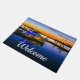 Welkom doormat dat aangepast kan worden met een prachtig gewaagd en krachtig zonnemagisch uur boven het Ray Hubbard-meer in Rockwall Texas, Verenigde Staten. Een boot met licht zit geparkeerd in het bootdok terwijl een man geniet van het mooie schemeruur. Op zoek naar meer prints of producten? Je kunt mijn winkel bezoeken: http://www.zazzle.com/timelessmomentsphtgy Deze foto is genomen door Jennifer White met Timeless Moments Photography. Alle afbeeldingen zijn copyright © Timeless Moments Fotografie.