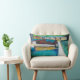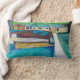 Deze helder gekleurde kussen zullen elke kamer aanvullen. Het afbeelding is een abstract landschap, in tintelingen, blauwe plekken, groenen. Stel je het dok en het huis voor terwijl je in het midden van het meer zweeft op een hete zomerdag.