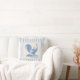Koel kussens!! De achtergrond ziet er uit van ouderwetse tikken, en aan de voorkant een blauwe en witte afbeelding van een boerenkip. Dit zou prachtig zijn in je keuken in de boerderij of in de woonkamer in Frankrijk.