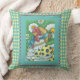 Voeg een aanraking van land toe. POLKA DOT HEN, CHICKEN PORTRAIT SIERKUSSEN Large, Blauwgroen/Yellow Border *Pas Susan Brack Design aan
