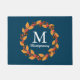 Vier de herfst oogst met deze krans deurmat met oranje bladeren, bruine eikels, twijgen en rode bessen! Maak uw veranda klaar voor de pracht en de frisse lucht van de herfst! Pas uw familiemonogram en naam aan in wit script.