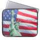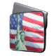 Een patriottisch ontwerp met symbolen van de Amerikaanse vrijheid: het Vrijheidsbeeld en de Amerikaanse vlag.